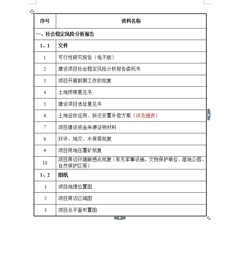 • 社會(huì)穩(wěn)定風(fēng)險(xiǎn)評(píng)估所需資料清單